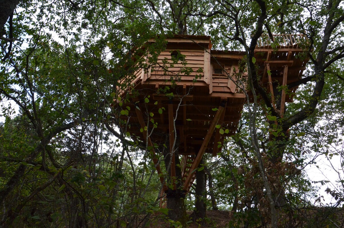 Cambio de aires total para una escapada en una cabaña en lo alto de un árbol, enclavada en medio de los robles. La terraza se encuentra en otro rellano a más de 6 metros de altura. No se admiten mascotas.