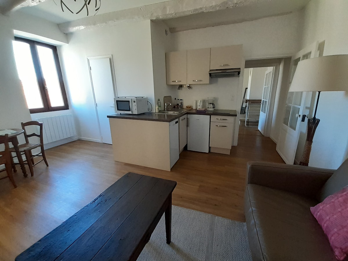 Este acogedor apartamento se encuentra en el primer piso de una encantadora casa del siglo XVIII convenientemente situada en el corazón de uno de los pueblos medievales más bonitos de Francia: St-Cirq-Lapopie. El apartamento se distribuye en dos plantas con salón, comedor, cocina equipada, dormitorio, baño, aseo y terraza, que se puede utilizar como aparcamiento privado. Renovado con buen gusto, el espacio es cómodo, moderno, luminoso y totalmente equipado con vistas al pueblo medieval.