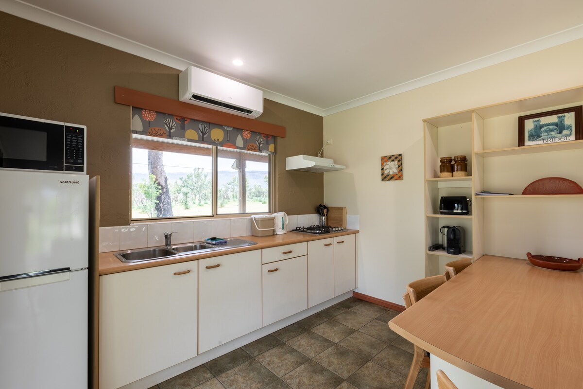 La cómoda casa de campo de un dormitorio está situada en nuestra propiedad ganadera de 450 acres. Estamos cerca de las ciudades costeras de Shellharbour y Kiama. Puedes disfrutar de las playas y luego volver a casa y sentarte a contemplar las vistas de la granja. Tenemos muchos animales para que te acerques a ellos si lo deseas y una gran cantidad de aves en la propiedad. La casa tiene una cómoda terraza para que te relajes y veas a los caballos y al ganado pastar. Una experiencia en el campo a solo 2 horas en coche de Sídney.