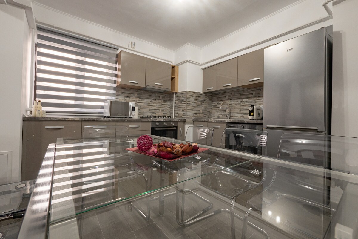 Te damos la bienvenida a "Central Lux'', un espacio perfecto, donde la elegancia se encuentra con la comodidad y se piensa que cada detalle da la bienvenida a sus huéspedes con calidez y hospitalidad. El departamento está recién reformado, todo es nuevo y moderno. Está a 3 minutos del corazón de Pitesti y cerca del bosque Trivale. En las inmediaciones hay tiendas, supermercados y estaciones de transporte público. ¡Te deseamos una estancia placentera y una experiencia inolvidable!🙂