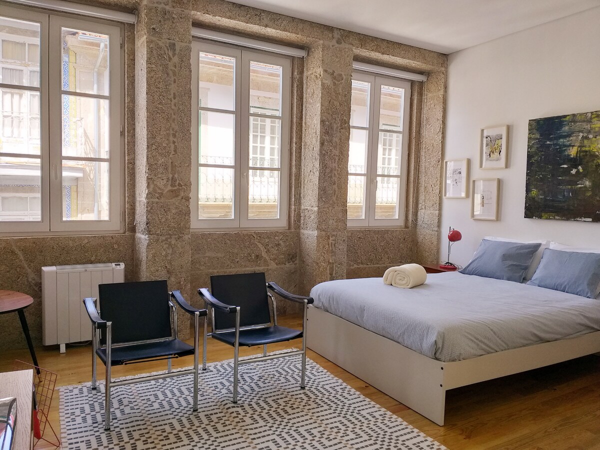 Alojamiento situado en medio de la principal calle peatonal de Braga, la Rua do Souto. Desde las ventanas se puede vislumbrar desde el emblemático Arco da Porta Nova, la Iglesia de los Congregados, pasando por Largo do Paço y Brasileira, es decir, toda la calle. Es un estudio con carácter, perfectamente iluminado por la luz natural, equipado con muebles y electrodomésticos nuevos y decorado con obras de arte del propietario, un artista local.