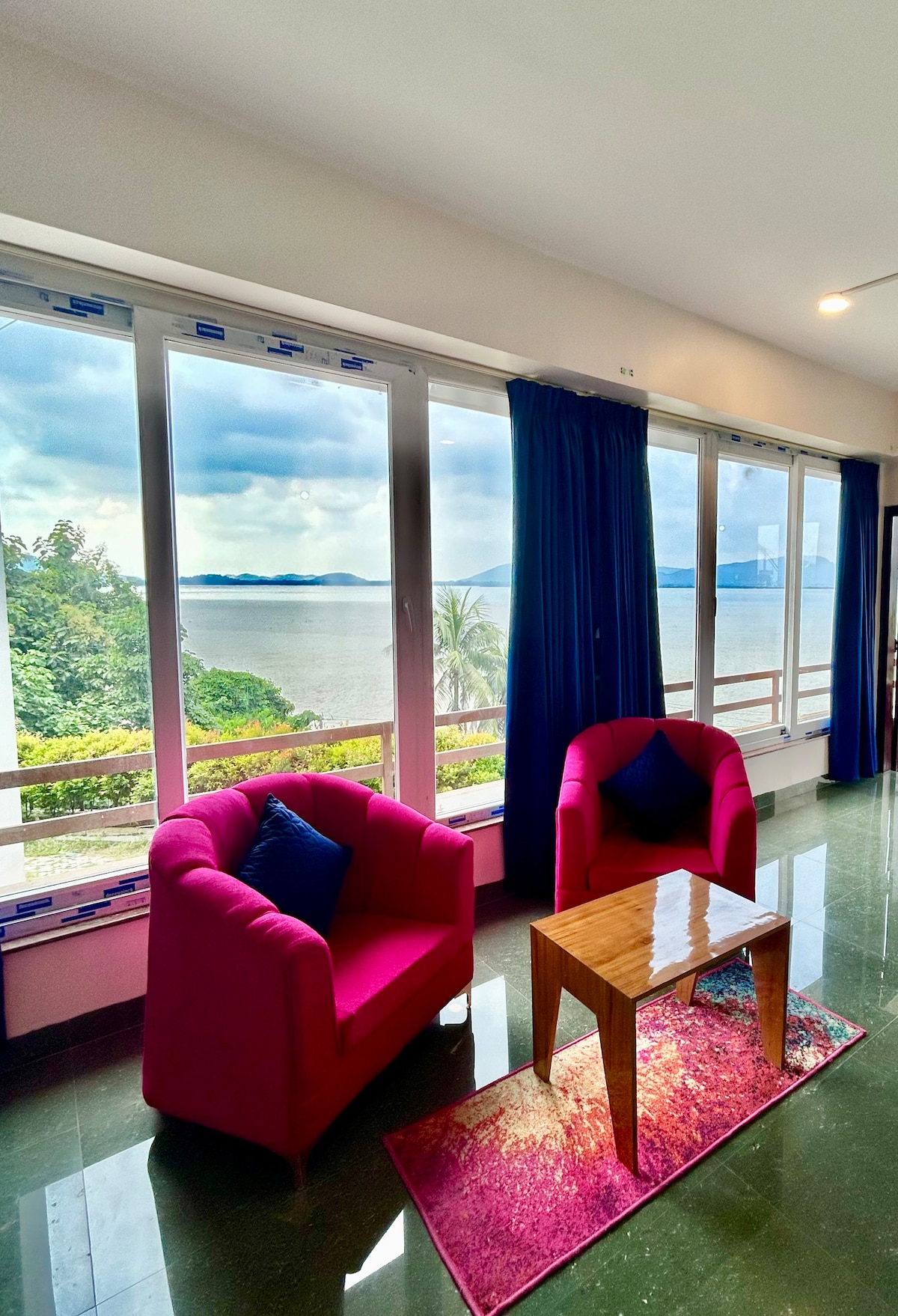 Este alojamiento único tiene personalidad propia. Un epítome de lujo con vistas maravillosas del poderoso Brahmaputra. Situado a orillas del río Kharguli, Guwahati está bien comunicado desde el centro de Guwahati. El apartamento tiene dos dormitorios bellamente decorados con baño adjunto, sala de estar y comedor, cocina bien equipada y un largo balcón con vistas al río. No ofrecemos desayuno. La comida es de autoservicio. Se incluyen alojamiento, artículos de aseo, té, café, azúcar, sal, especias y aceite de cocina.