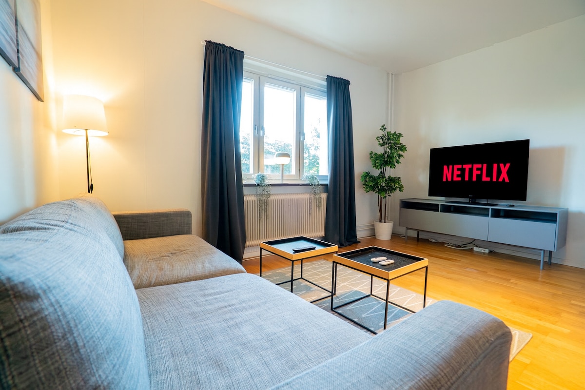 Amplio y bonito apartamento de 59 metros cuadrados en el centro de la ciudad. Se llega a todos los restaurantes, tiendas y vida nocturna de la ciudad con un paseo en tranvía en 5 minutos. El departamento está en una bonita zona residencial muy cerca de tiendas de comestibles y restaurantes, cafeterías y parada de tranvía. La zona tiene un punto de partida muy bueno, con todas sus posibilidades de comunicación, para explorar la ciudad. El patio acogedor y verde es de uso gratuito. Cerca de las áreas de negocios: -Lindholmen -Volvo