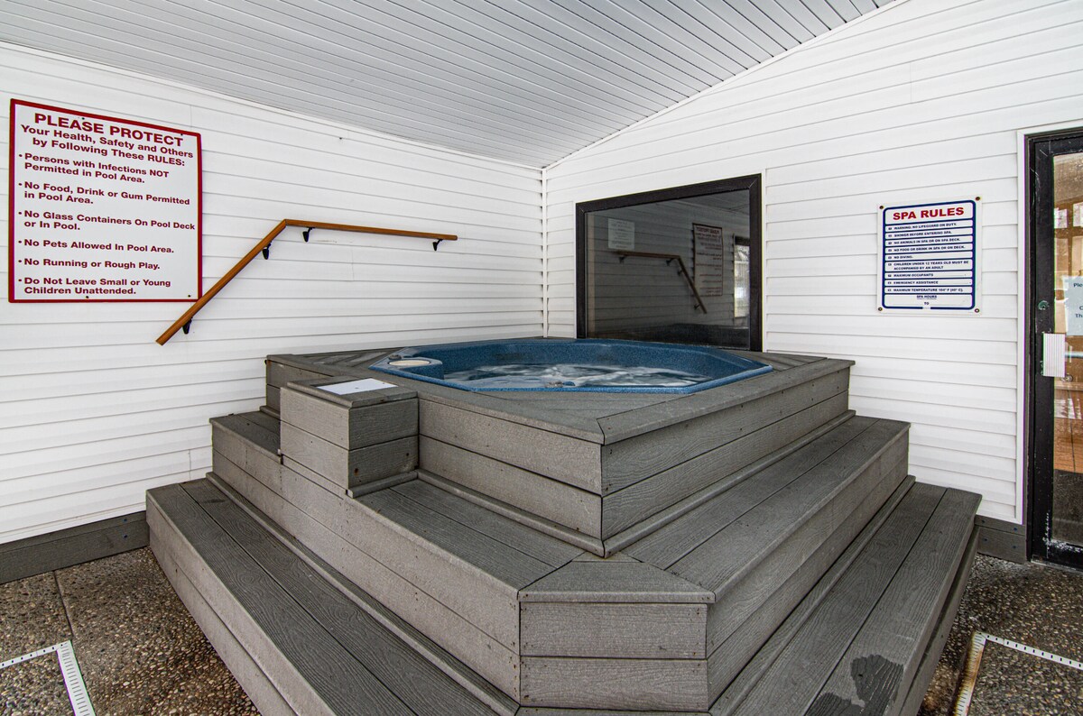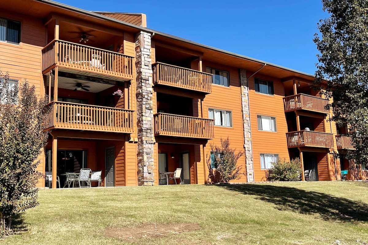 Nuestro espacioso apartamento de 2 dormitorios/2 baños en la planta baja está a solo minutos de las principales atracciones. Disfruta de las piscinas interior y exterior, la bañera de hidromasaje y la sauna. Fácil acceso a 76 Strip, Branson Landing, Silver Dollar City y Table Rock Lake. La unidad tiene lavadora y secadora, cocina bien equipada, bañera de hidromasaje y terraza con capacidad para 6 personas. Mantente entretenido con Internet de alta velocidad, televisores de 55pulgadas con servicios de streaming, juegos de mesa y libros infantiles. El lugar perfecto para descansar, relajarse y crear recuerdos para toda la vida.
