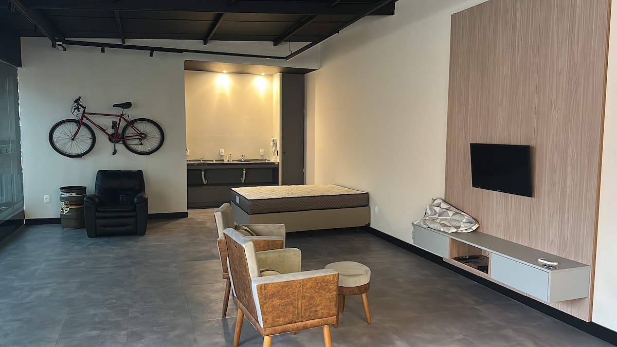 Relájese en este espacio tranquilo y elegante. Entrada independiente, por el lateral de la casa principal, con estacionamiento seguro en condominio cerrado. Muy acogedor y con exuberante bosque en frente (mucho verde y aire puro). Venga a descubrir por qué este espacio se llama "Canto do Sabiá". Dormitorio (cama doble, armario y TV), sala de estar (sofá cama y aire acondicionado), cocina (totalmente equipada, con horno y cocina eléctricos, microondas y nevera) y baño, en un espacio conjugado, decorado con mucho cariño.