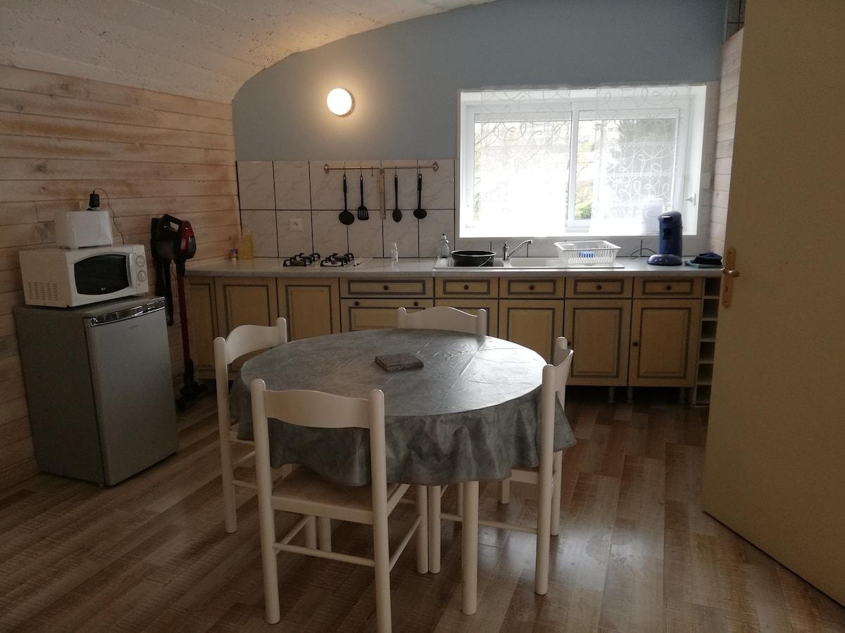 Para una noche, un fin de semana o la semana, ¡venga a relajarse en una cálida cabaña de madera, sobre pilotes y con todas las comodidades! Disfrutará de un servicio para-hotelero, la cama (queen size) está hecha, se proporcionan toallas, la limpieza y la desinfección de la habitación están incluidas. La gran bañera le promete momentos de relajación. La zona de cocina te permite ser independiente.