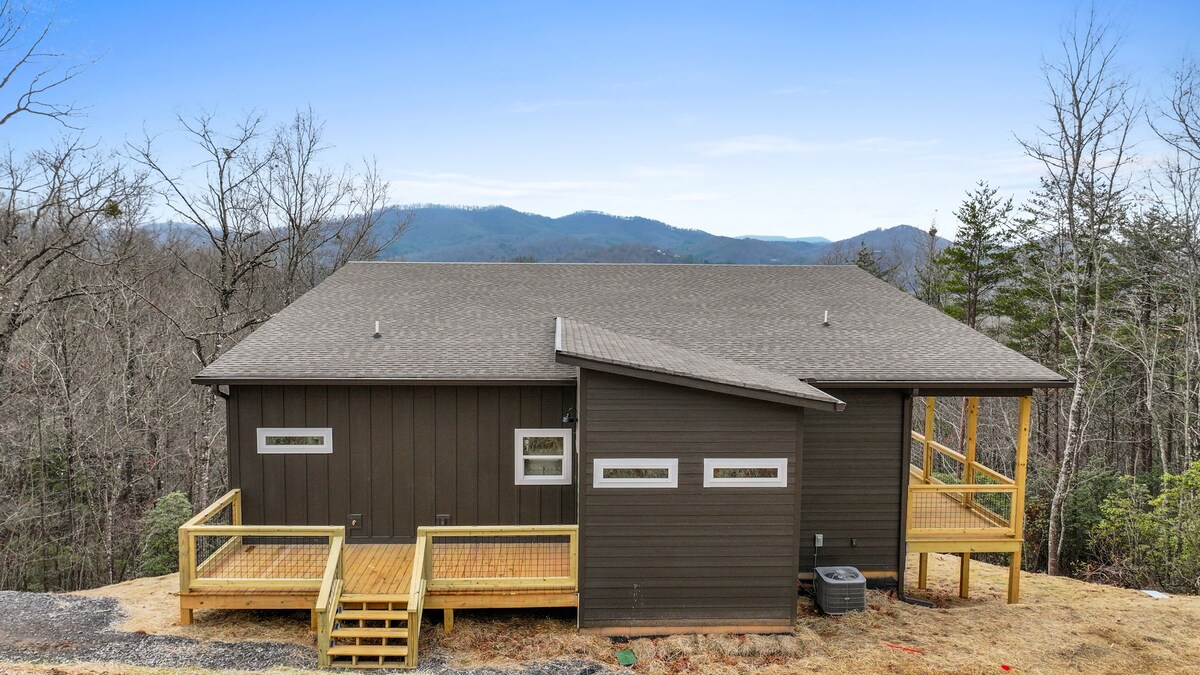 Woodridge Mountain Home Entire House with 50+ acres for your enjoyment One bedroom with king bed, one bath, queen sleeper sofa in the living area. Paved driveway and covered double parking. Open living area with a well equipped kitchen featuring granite counter tops. Central heat and air. Outdoor living includes a front and back deck with a fire pit and a gas grill. Just open the back door and your furry friend has a large fenced in area to play.