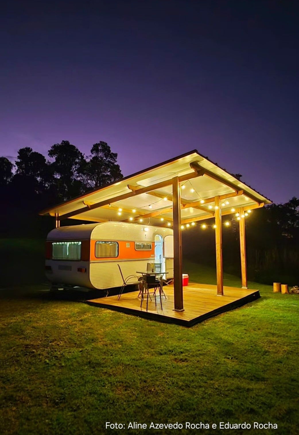 Acomodação no trailer foi pensada em proporcionar experiências e momentos inesquecíveis para os hospedes. O Trailer esta equipado com cama, mesa, sofá, armários, cozinha e banheiro além de muitos acessórios e utensílios. Na parte externa há um deck com banheira, mesa com 2 cadeiras , churrasqueira portátil e um fogão com forno a gás. Há também um banheiro externo. Uma rede suspensa para os que apreciam contemplar o por do sol e uma bela fogueira para aquecer a noite.