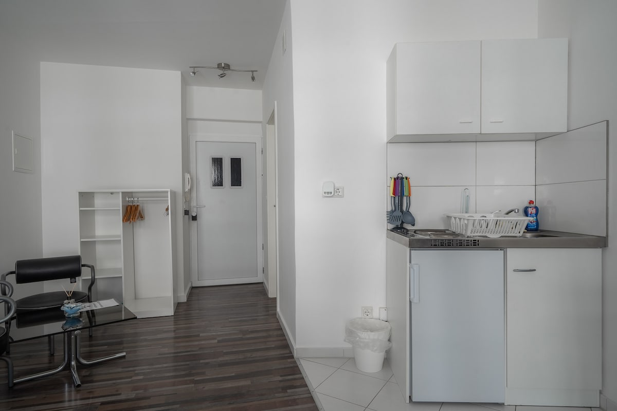 Estos estudios de 24 metros cuadrados son ideales para un máximo de dos personas. Todos están amueblados con una moderna cocina pequeña con fregadero, estufa y microondas, una cama doble (160x200) y un baño con ducha. También encontrarás una mesa de comedor donde puedes disfrutar de comidas o trabajar de forma remota en estas habitaciones.