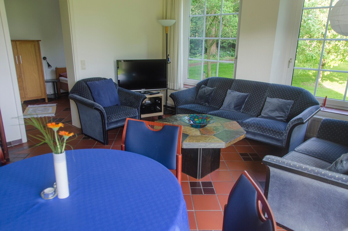 ¡Un lugar para familias y para quienes buscan tranquilidad! Este acogedor y soleado apartamento está situado en el primer piso de una casa de 6 viviendas con jardín, plaza de aparcamiento y balcón orientado al sur. Se encuentra a solo 900 m de la playa/playa para perros y muy cerca del bosque de Wernerwald, con su piscina al aire libre y su parque de escalada, el páramo costero de Duhner y el centro del Parque Nacional. ¡La naturaleza está a la vuelta de la esquina! Tiendas a unos 2 km, alquiler de bicicletas a 500 m, médico/dentista a unos 1,5 km.