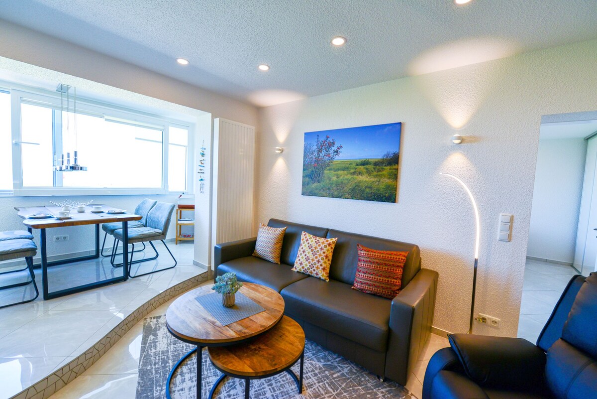 Apartamento prémium de Bheaven Premium Homes en una ubicación de ensueño exclusiva directamente en la playa del Weser y a poca distancia a pie de los lugares de interés. Te espera un alojamiento de lujo con vistas panorámicas al agua, una gran terraza y un diseño excepcional. Disfruta de puestas de sol únicas y observa la actividad marítima en la desembocadura del Weser y la estación de prácticos marítimos. Pasa el día en la playa o regresa a esta joya arquitectónica después de emocionantes excursiones a la ciudad costera.