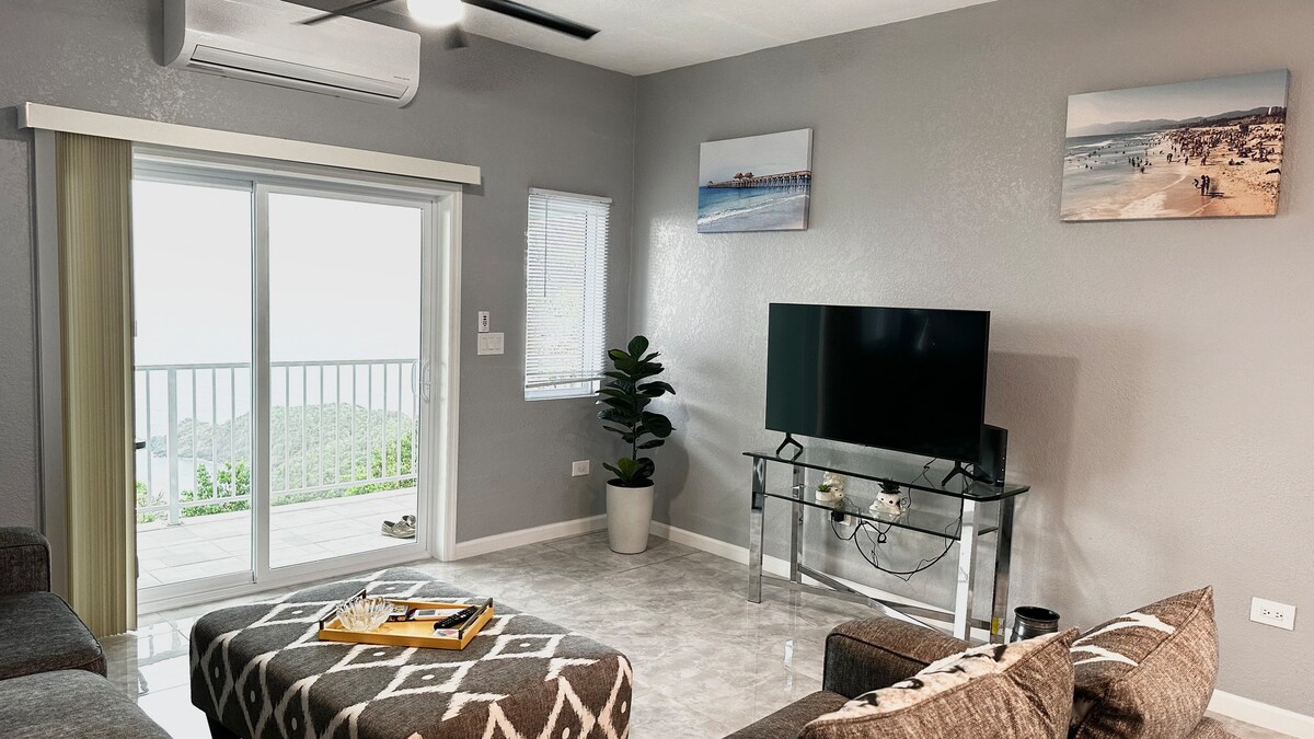 *SIN TARIFA DE LIMPIEZA * Ubicada en el fresco lado norte de St. Thomas, nuestra casa tiene vistas a un gran patio plano y una vista panorámica de la bahía de Magen, el océano Atlántico y 20 islas pequeñas. Tu unidad tiene una entrada privada a 5 pasos de tu plaza de aparcamiento dedicada. Nota: 1. No se permite fumar en la terraza ni en el apartamento. 2. A diferencia de muchos Airbnbs, NO cobramos una tarifa de limpieza, por lo que pedimos a nuestros huéspedes que barran y laven sus platos antes de irse. 3. No más de 4 huéspedes en NINGÚN momento.