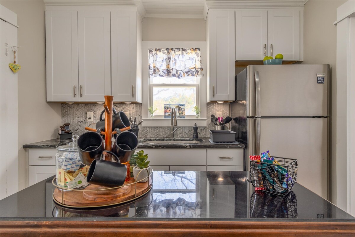 Casa de huéspedes bien equipada en la histórica New Bern que ofrece todas las comodidades de un hogar a menos de 0,5 millas del centro de la ciudad. Dormitorio privado y baño en la planta baja, cama tamaño king en el loft. Cada habitación tiene unidades de pared individuales para el control de temperatura personalizado, la sala de estar tiene TV con Firestick para streaming y altavoz Bluetooth. La cocina no tiene fogones ni horno, pero incluye microondas, horno tostador, lavavajillas, nevera, licuadora y hervidor de agua. ¡Utiliza nuestra pequeña biblioteca para descubrir tesoros nuevos y antiguos!