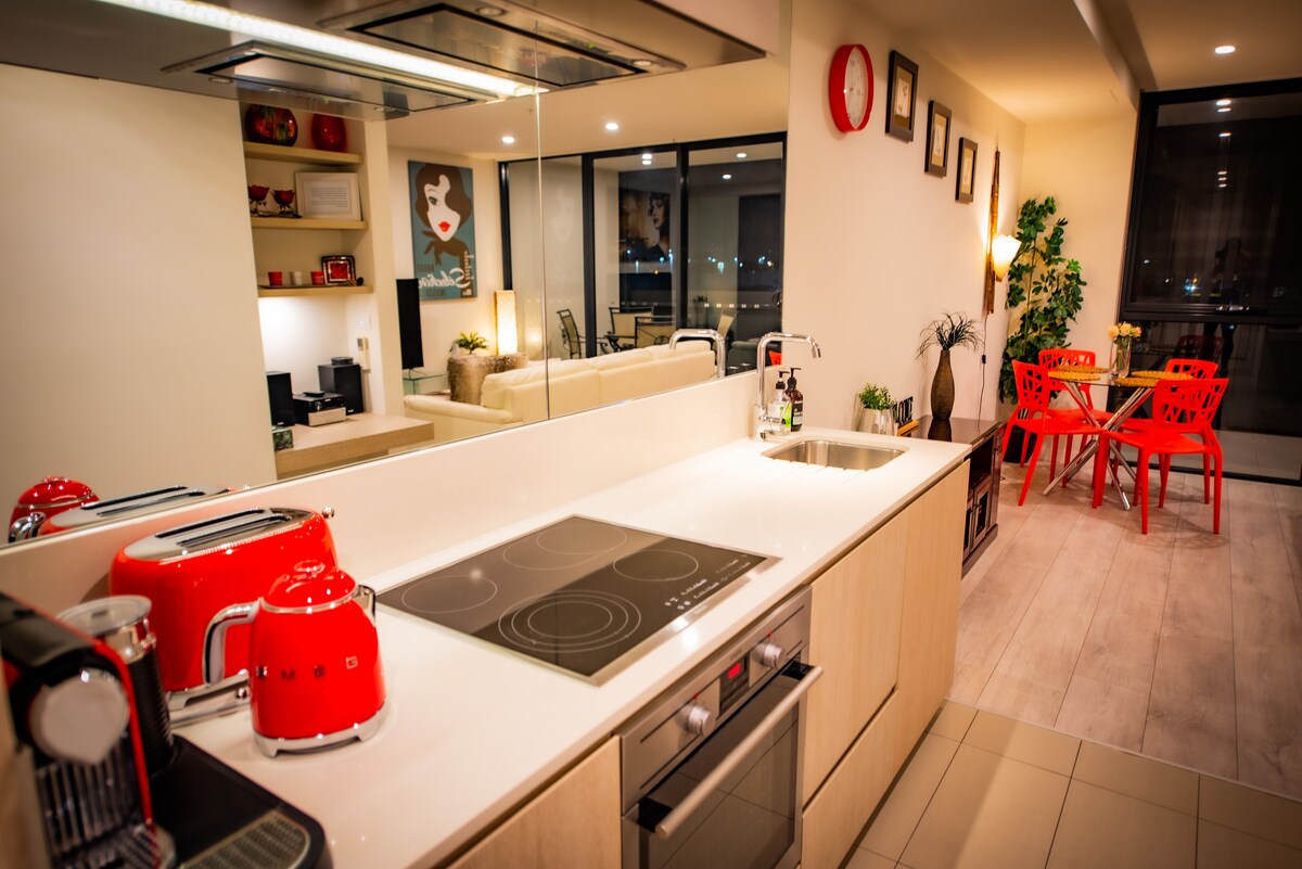 Este hermoso apartamento tiene increíbles vistas a la ciudad, es extremadamente cómodo, moderno, espacioso y excepcionalmente limpio con todas las comodidades de un hogar. Ya sea un viaje corporativo o una escapada romántica, este departamento es un hallazgo excepcional. Distancia a pie al centro comercial Highpoint y a solo 3 km de Flemington Race Course. Wifi, Foxtel, estacionamiento de seguridad en el lugar y a 2 minutos a pie del transporte público. La limpieza diaria de la habitación está disponible por $ 40 adicionales por día.