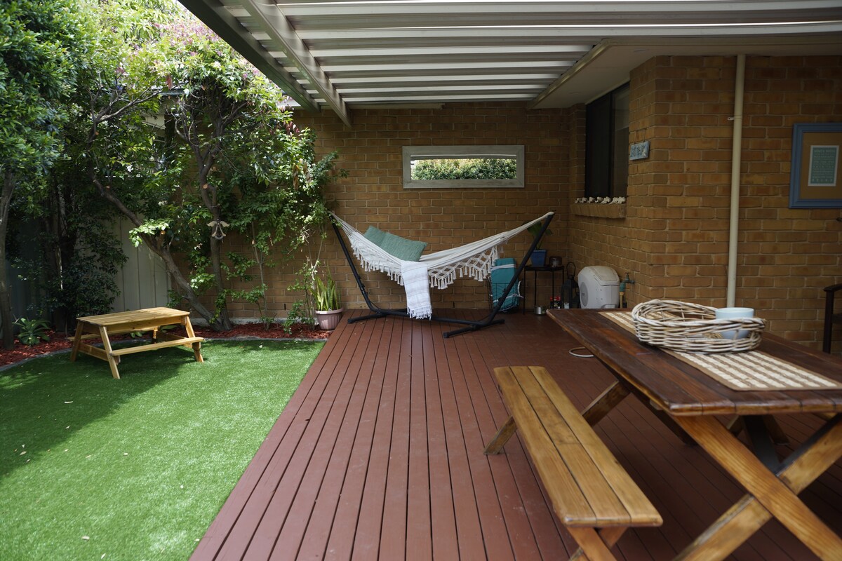 Beachside Retreat Granny Flat🏝️☀️ This affordable, detached, cosy, self-contained granny flat is the perfect convenient base for those who love to explore. Just moments from the beach, it offers a private and comfortable retreat with home-style amenities, including a fully equipped kitchenette, lounge w/ TV, bathroom with washing machine & a huge yard with a barbecue. The flat also features a double bed and a separate bedroom with a king bed and space for an extra single mattress if requested.