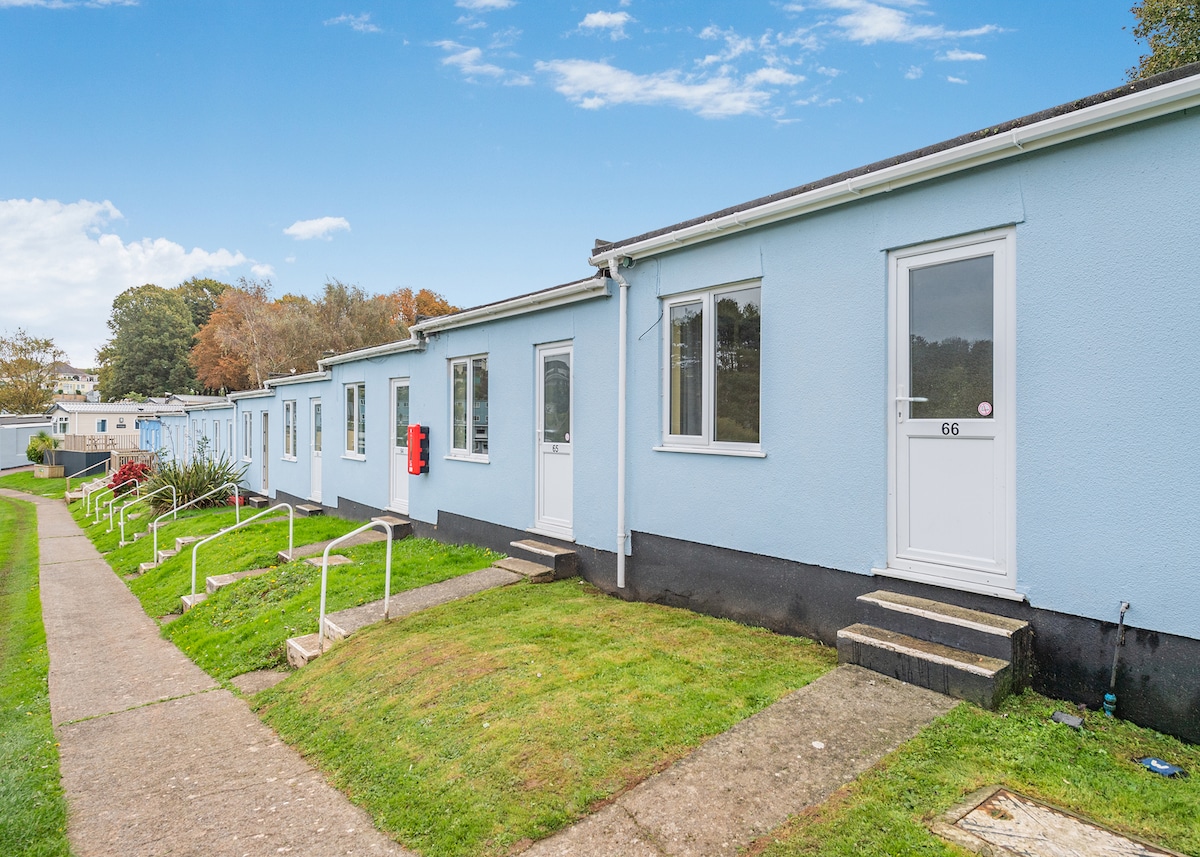 - Chalet bungalow independiente en un tranquilo parque de vacaciones a las afueras de Dartmouth con vistas a la campiña circundante. - Dormitorio doble y con dos camas individuales. - Cocina con mesa de comedor, lavadora, nevera con congelador, microondas y utensilios. - Sala de estar con TV, 2 sofás, puertas de patio a zona de césped con vistas. - Baño con bañera, ducha eléctrica, lavabo, toallero eléctrico, inodoro y calefacción por suelo radiante si es necesario. - Electricidad con contador de monedas de 1 libra. - El césped compartido rodea el chalet, con asientos y mesas en la parte delantera y trasera.