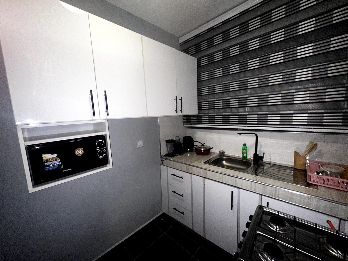 Relájate en esta escapada única y tranquila diseñada para que tu estancia se sienta como un "hogar lejos de casa". Este apartamento de un dormitorio cuenta con un estilo moderno pero simplista; y la ubicación permite un fácil movimiento por la ciudad. Tú eres; A 3 minutos en coche del centro comercial Semanhyia Golden (SG) A 5 minutos en coche de KNUST. A 12 minutos en coche del aeropuerto internacional de Kumasi. A 12 minutos en coche del centro comercial Kumasi City Mall. A 12 minutos en coche de la estación Asafo VIP A 15 minutos en coche del mercado de Adum A 20 minutos en auto de Rattray Park.