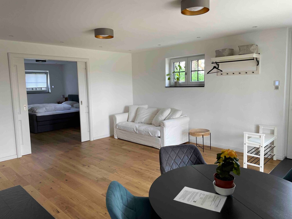 Un apartamento luminoso y moderno te espera en una ubicación tranquila. El apartamento de aprox. 75 m² se encuentra en la primera planta de una casa de dos familias. Tiene una cocina abierta / sala de estar con TV. Hay una plaza de aparcamiento disponible justo enfrente del apartamento. En la cocina equipada, todos los utensilios de cocina necesarios están disponibles (ollas, cubiertos, vasos, etc.) Solo cuando se reserva para más de 3 personas, el segundo dormitorio con cama doble (180x200) está disponible, con un recargo de 35 € por noche.
