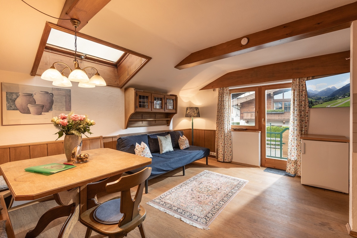 Nuestro apartamento para 2-3 personas con vistas al Kitzsteinhorn se encuentra en una zona tranquila, a 100 m del lago Zell con propiedad privada. El apartamento consta de una habitación, un pasillo y un baño con bañera. El salón también se utiliza como dormitorio. Hay un sofá acogedor y una cama doble. La cocina independiente está totalmente equipada. El apartamento también tiene un gran balcón con una hermosa vista de las montañas y el lago.