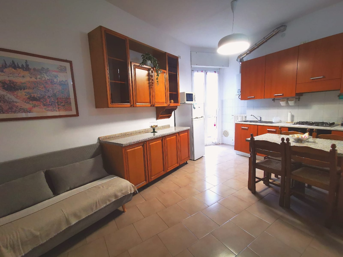 Bilocale 50mq, zona centro Corsico, 10km da centro Milano, 6km Forum, SanSiro, ospS.Paolo Vicino Camanaclub ben collegato tangenziali. Bus direzione metropolitana blu S.Cristoforo,verde Romolo, rossa Bisceglie. Aria condizionata( solo mesi estivi) ,wifi fibra200mb,materasso memory, lavatrice, microonde, macchina caffè, cucina attrezzata, set asciugamani bagno, phon, biancheria. Parcheggio gratuito in strada. Tassa soggiorno 3 euro/notte a persona da pagare in contanti in loco, esclusi minori.