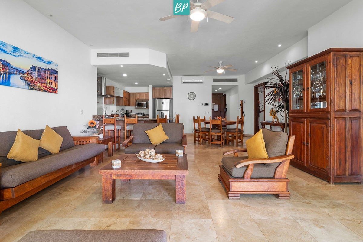 Disfruta de una terraza privada con impresionantes vistas al mar en este elegante y cómodo apartamento en Puerto Vallarta. Perfecto para estancias cortas o largas, el espacio cuenta con un diseño moderno, una decoración cuidada, aire acondicionado y un espacio de trabajo dedicado. A solo unos pasos de la playa, los restaurantes y las principales atracciones, ofrece la combinación ideal de relajación, comodidad y estilo.