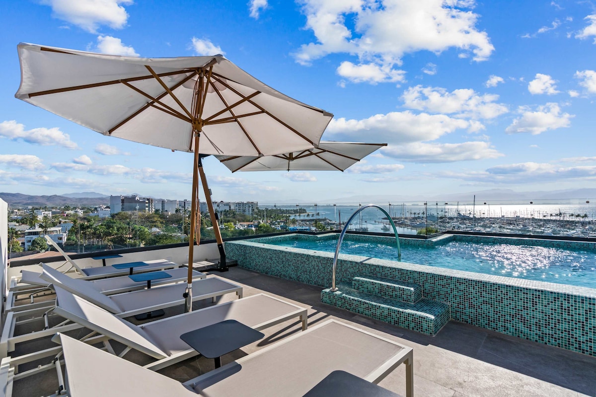 Risco 603: 1BR Downtown Bucerias con piscina en la azotea
