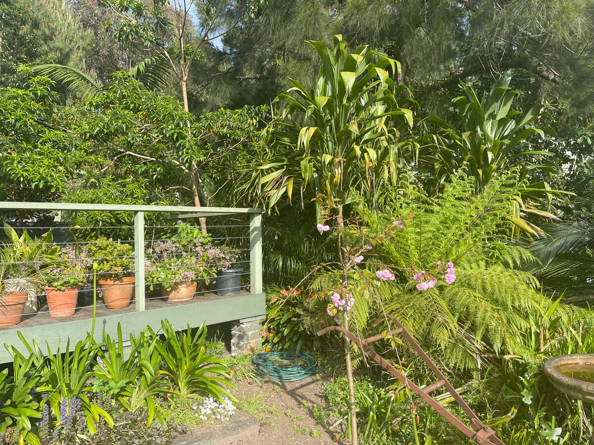 Nestled in our citrus and nut orchard is the 'Captain's Cabin'. A hideaway in your own private section of the garden, with an amazing outdoor bath, ample cooking facilities inside and out, and fire pit, not to mention a comfortable queen bed with natural linen and towels, it's your base for the perfect Kangaroo Valley escape. A 5 minute walk from the village centre and 50m from the cycle and walking path, it's the perfect location too. Coffee machine, record player and provisions included.