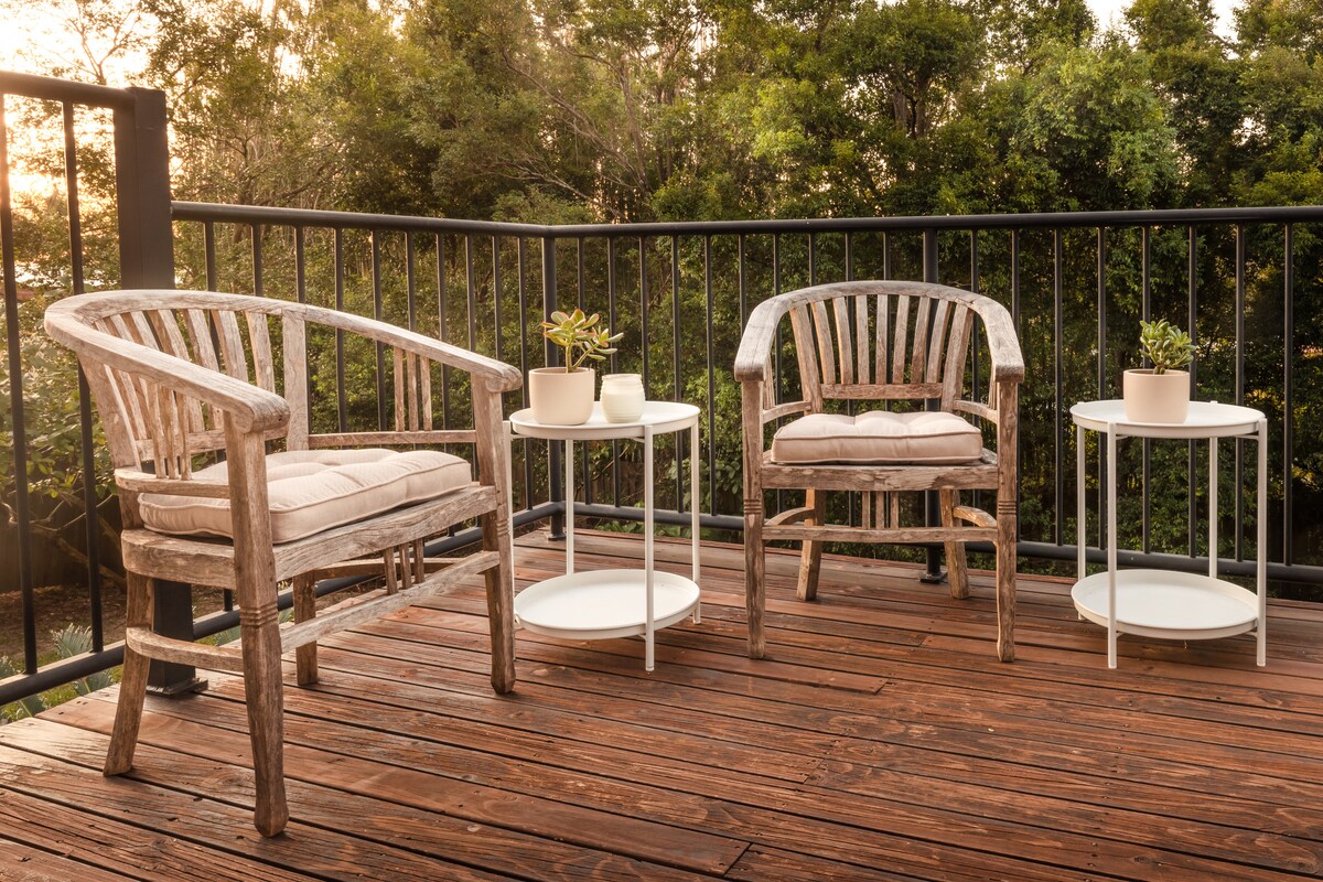 Luxury private residence adjacent to Buderim Forest Park, where Martin's Creek cascades over a series of waterfalls. Only 700m to Buderim village's eateries and boutiques. Lovingly created to spoil you to bits! Wake to birdsong, wander down the gully, morning coffee in the hanging chair, take up a book in the window seat and at end of day a relaxing magnesium bath under the stars. We are here to make sure you have everything you need, however **You won't be disturbed** This your private oasis