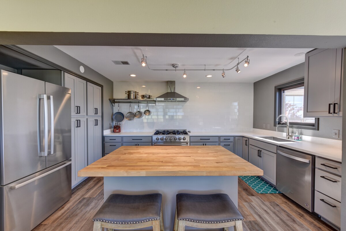 ¡Te damos la bienvenida a Buena Surf! ¡Tu lujosa escapada a la montaña ubicada en el corazón de Buena Vista, Colorado! Toda la casa fue diseñada y amueblada para darte a ti y a tus huéspedes la sensación de un hotel boutique. Inspirada en la cultura local del surf en Buena Vista, cuenta con 4 dormitorios tamaño king de estilo único, cada uno diseñado para permitirte relajarte y recargar las pilas después de tu gran aventura en las montañas. ¡Cuenta con 3 hermosos baños de mármol, una cocina totalmente equipada y todas las comodidades que tus huéspedes deseen!