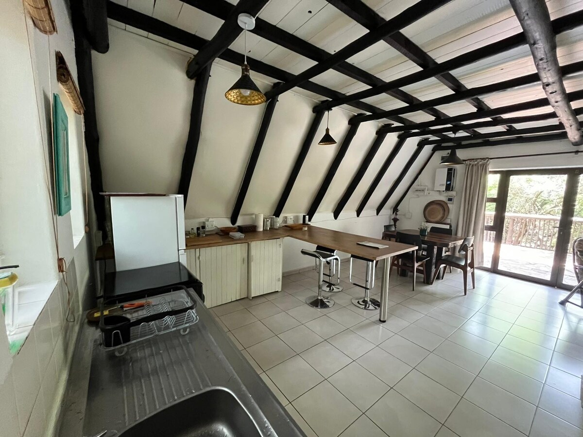 Escápate a este retiro autosuficiente que funciona con energía solar y está rodeado de una exuberante vegetación. Relájate junto a la piscina compartida, disfruta de una partida de billar en el patio o utiliza el braai para comer al aire libre. La cocina de planta abierta incluye una cocina de gas y la sala de estar ofrece asientos acogedores y un televisor inteligente con wifi de alta velocidad. Con dormitorios elegantes y baños modernos, este alojamiento ecológico es perfecto para parejas o trabajadores remotos que buscan tranquilidad y comodidades modernas en un entorno tranquilo y elegante.