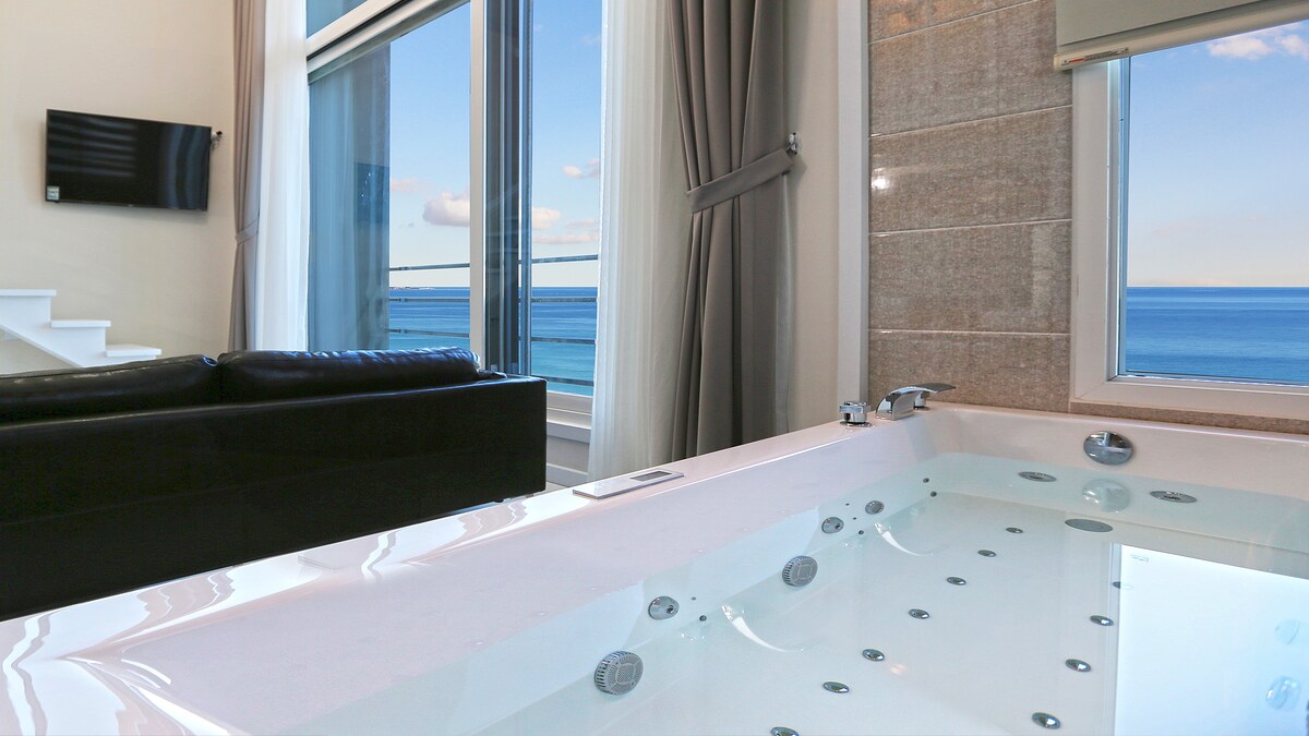 Habitación 302, un alojamiento elegante y moderno con vistas al mar desde la ventana del spa Gangneung