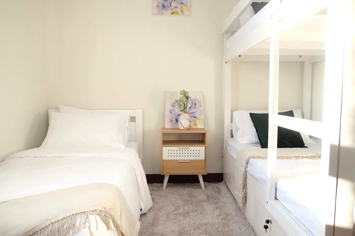 Ideal para familias de 4 ¡Nuestra unidad de un dormitorio recién inaugurada ya está abierta para huéspedes! Apartamento de un dormitorio. La habitación está equipada con lo siguiente: * Cama tamaño queen * Sofá cama (2 plazas) * 2 aires acondicionados divididos * Smart TV (con Netflix) de 55 pulgadas * Armario enorme para ropa *Microondas * Wifi *refrigerador * Arrocera * Cocina de inducción * Utensilios de cocina y comedor * Mesa de comedor * Sofá * Ducha fría y caliente Las comodidades incluyen: * Piscina. * Gimnasio * 2 tiendas 7/11 (1 abre las 24 horas; 1 abre hasta las 23:00 h)