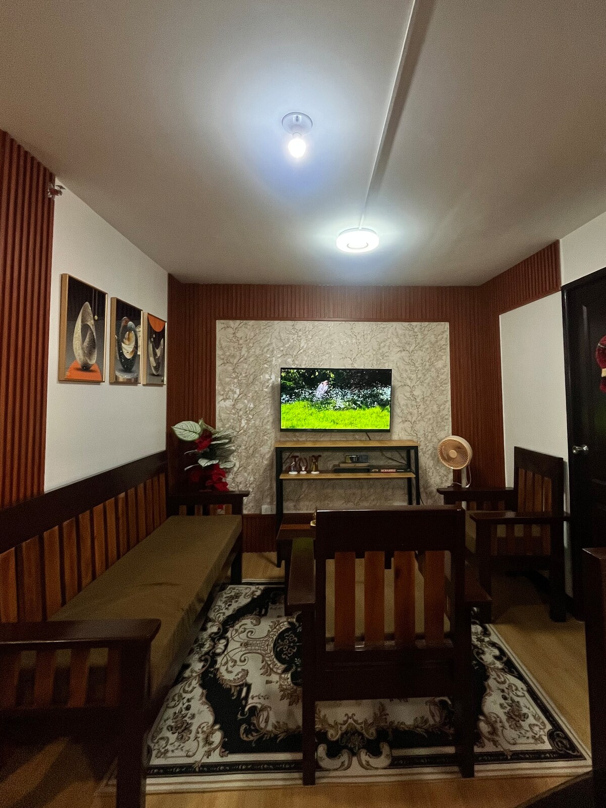 Bienvenido a nuestro complejo privado, un complejo de 3 dormitorios totalmente privado cerca del Philippine Arena. Perfecto para grandes reuniones, este alojamiento incluye 2 baños interiores privados, 1 baño exterior, encanto nativo y acceso completo a la piscina, el karaoke, la cocina y el comedor. Se permiten hasta 25 invitados, pero la configuración para dormir es para 18 invitados cómodamente. No compartirás el alojamiento, será todo para ti.
