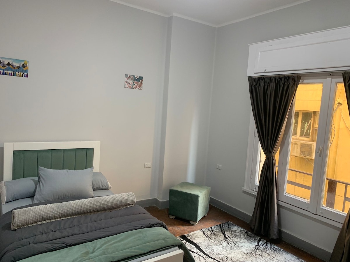Enjoy a chic retreat in the heart of Cairo! This cozy one-bedroom apartment is just a 5-minute walk from the Egyptian Museum and metro lines. Features include a comfortable bedroom, stylish living area with sofa bed, private balcony, and a well-equipped kitchen. Breakfast and laundry services available for an extra cost. Quiet, secure building with elevator access for a peaceful stay.