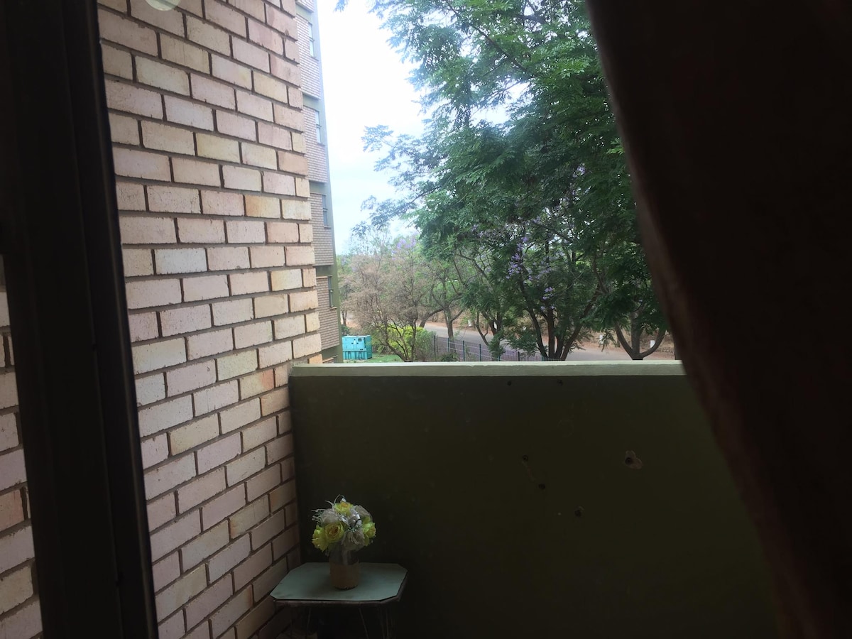This self contained stylish place is perfect for a couple, single traveler or a couple with a baby . It has 1 Queen size bed and a full bathroom with shower , bath dressing area and wardrobes. It has a generous size lounge with fridge, microwave kettle, utensils and 55 inch television. It is situated on the way to Matopos national park, where Cecil Rhodes is buried . It is a convenient stop over on your way to Victoria falls . 8.5 Km from Bulawayo Centre. Eating out places within reach