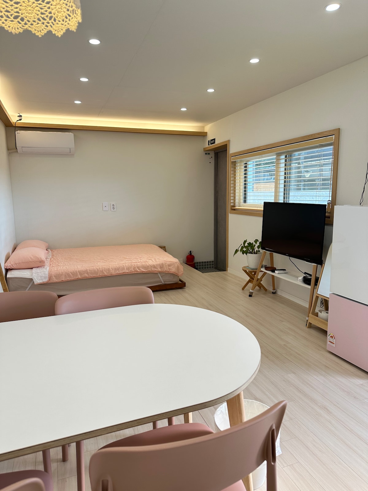 . A 10 minutos en auto de Hwangnidan-gil.🚗 . Complejo Bomun (Gyeongju World, California Beach) a 15 minutos en coche🚗 . Museo. Anapji (Donggung y Wolji) a 5 minutos en coche.🚗 . Bosque del Milenio. Instituto de Investigación Forestal a 5 minutos en coche . A 15 minutos en coche del templo Bulguksa.🚗 ¡El dormitorio, la cocina y la sala de estar están separados! Sanar en un espacio cómodo ^ ^ Barbacoa x El casco 🏠antiguo tiene un total de 6 habitaciones, pero solo se abren un pequeño número de habitaciones. Recomendado para aquellos que quieren disfrutar de un concepto vintage🤩🤩 Anuncio Solo se utiliza la habitación 101 en el primer piso, por lo que puedes usarla solo en el primer piso ^ ^ Lo recomiendo para un poco más de personas o familias con niños. Puedes cocinar, y el dormitorio y la cocina están separados, por lo que es agradable acostar a los niños y beber cerveza tranquilamente. Recomiendo una taza de café mientras escuchas el sonido de los pájaros en la terraza después de un paseo matutino. Proyector de vigas disponible Netflix, Disney Plus y Coupang Play están disponibles para su visualización inmediata. Además, se puede utilizar como una cuenta personal ott.😊 La entrega de Homeplus Nonghyup Hanaro Mart está disponible. Puedes entregarlo con antelación a tu llegada.😊 Hay una tienda de conveniencia cu a 10 minutos a pie.☺️