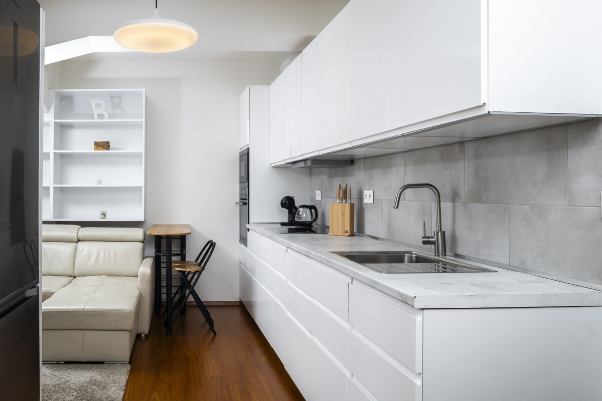 ¡Alójate con estilo en nuestro elegante estudio de Karlín! Después de un día explorando la ciudad, relájate en nuestro tranquilo balcón con una bebida en la mano. El estudio está perfectamente equipado para una estancia cómoda: desde una cocina totalmente equipada hasta internet de alta velocidad para trabajar o entretenerte, e incluso una lavadora-secadora para que tus viajes sean sin complicaciones. ¿Y la guinda del pastel? Ofrecemos aparcamiento en el garaje del edificio, así que no te preocupes por encontrar sitio. ¡Ven y vive la auténtica vida de Praga en el corazón de Karlín!
