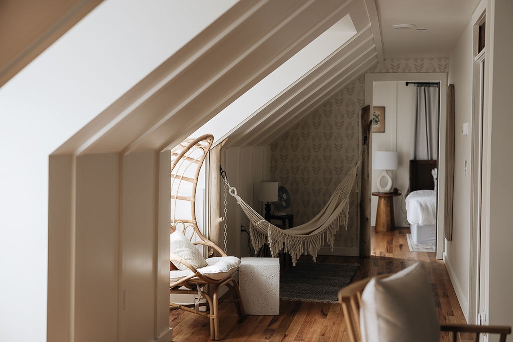 A 1936 Georgian Revival, Peri Social House is NC's Smallest Boutique Hotel. This first floor room has accessible access, a king bed and large bathroom. Spend slow mornings at our public coffee shop or enjoy a nice selection of craft beer, wines and cocktails at the cocktail bar. Walk to charming, downtown Black Mountain and explore the plentiful art galleries, local eateries and beautiful views. Peri means "mountain dweller" and we hope you'll dwell with us!