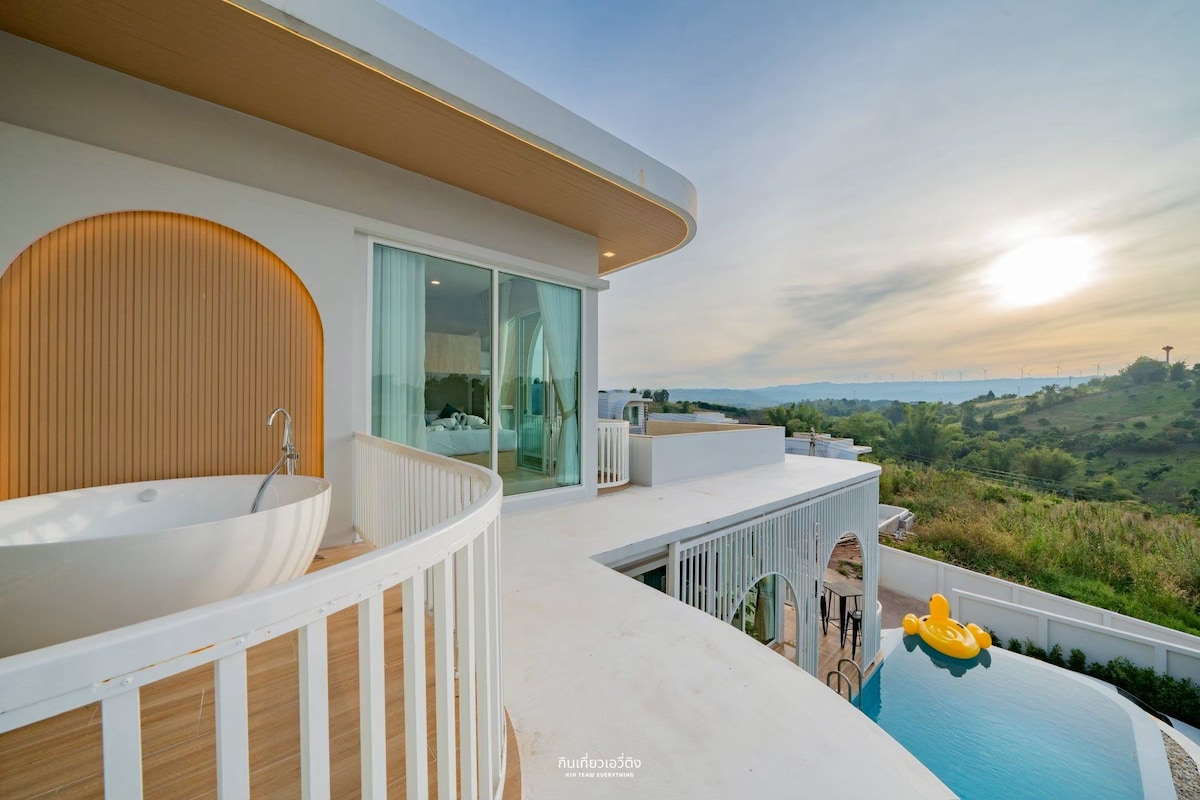 Escape to the misty highlands of Khao Kho in this modern 3-bedroom pool villa. Start your morning with cool mountain air and a private pool all to yourself, cook up a feast in the fully equipped kitchen, then end the night singing karaoke with your crew in the dedicated party lounge. Ideal for family trips, friend groups, or anyone who wants comfort, privacy, and a little adventure in the mountains.