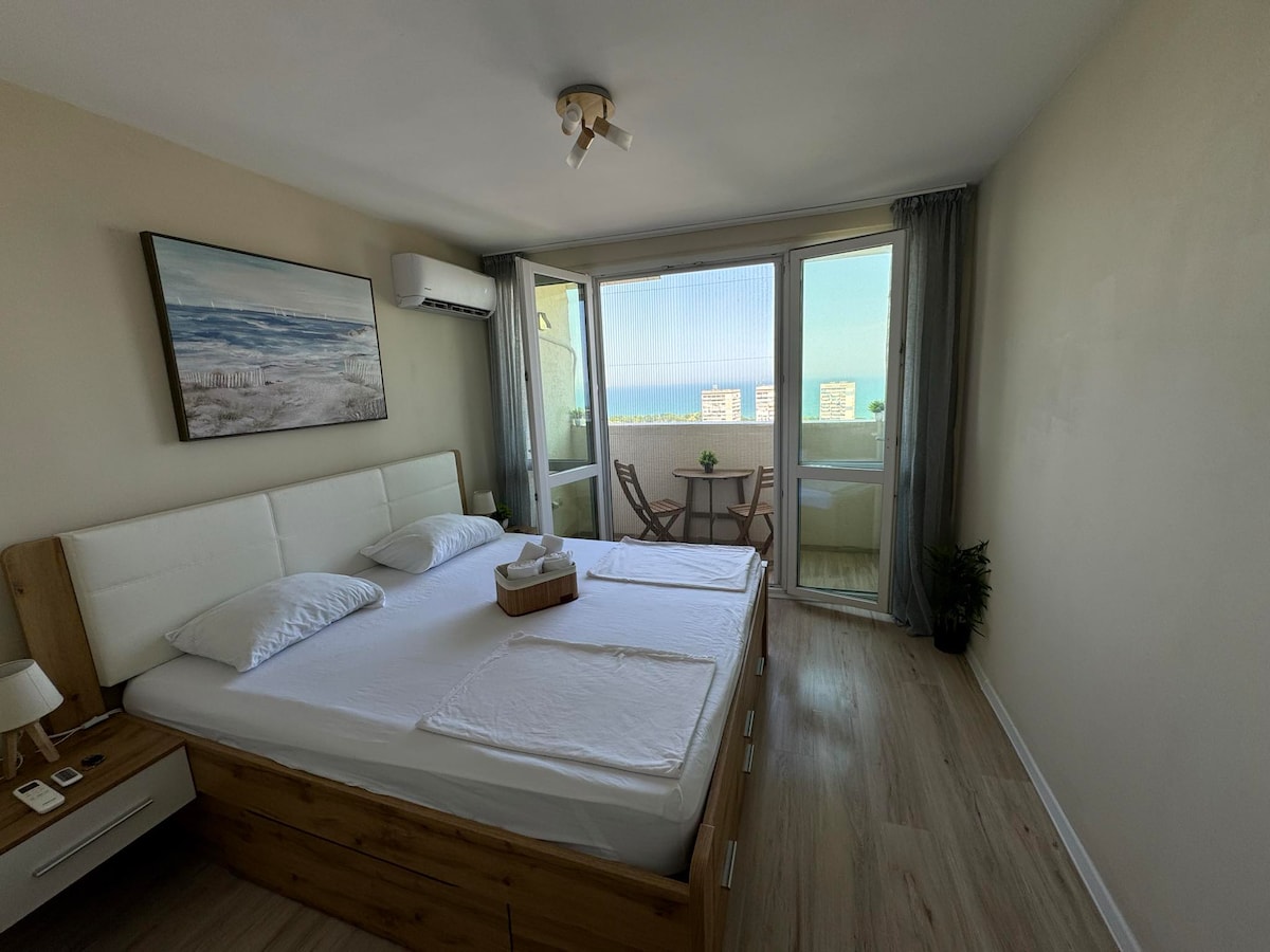 Discover Burgas from the best location in town - studio 504 in Côte d'Azur Residence. Nestled in the prestigious Zornitsa district, this stylish 45 m² studio is within walking distance of the beach and offers breathtaking views of the Black Sea Gulf, Atanasovo Lake, and the Sea Garden. Whether you're here for a short trip or an extended stay, this well-equipped apartment ensures comfort, security (24/7 video surveillance) and easy access to the beach, city, shopping, and dining. Parking spot!