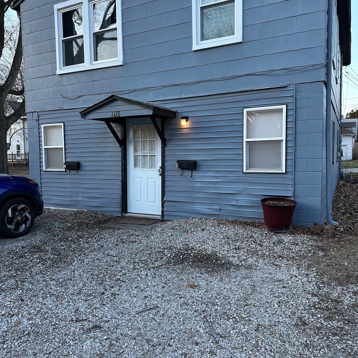 Dúplex de nivel superior situado cerca del centro de Burlington. Estamos a poca distancia a pie de Dairy Queen y Jerry's Main Lunch (¡nuestro desayuno favorito!) A solo 1,5 millas de las tiendas del centro de la ciudad, del paseo fluvial, del entretenimiento y de los restaurantes. Balcón privado con vistas al río, lavandería privada y estaciones de desechos para mascotas. Situado junto a un gran terreno abierto para mascotas y actividades al aire libre.