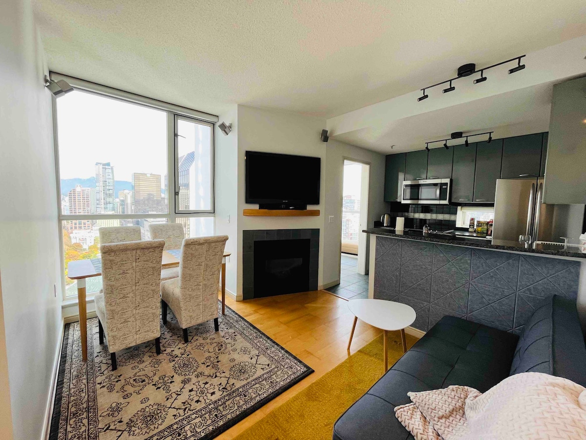 2 Floor Loft Free Garage parking + Ear plugs! Newly renovated! 15 ft ceiling with huge windows and lots of sun light. This is a beautiful and modern loft perfect for couple. And sofa bed(queen size) available. Nestled in the heart of Vancouver's bustling downtown, walking distance to all the downtown famous tourist sites and restaurants. You will have access to a range of amenities, including a fitness center, secure underground parking and outdoor patio. The kitchen is also fully equipped.