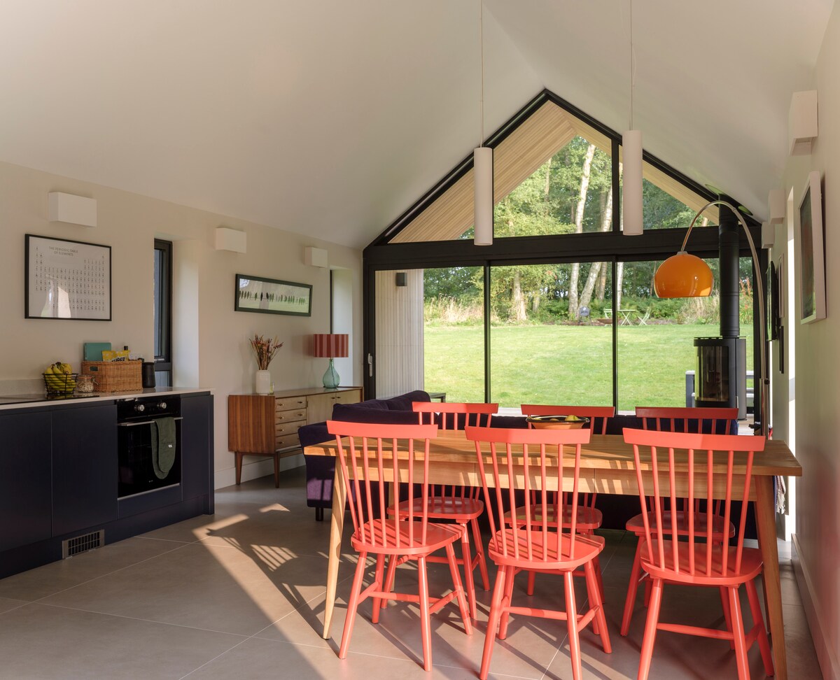 Casa cálida y cómoda en un lugar privado en el bosque. 2 acres de jardín para disfrutar. Sala de estar, comedor, 3 dormitorios , 2 baños, guardarropa con inodoro. NO hay COCINA. Amplia zona de aparcamiento fuera de la carretera con amplio acceso de doble puerta, coche esencial para disfrutar de esta impresionante zona. NUEVO para la casa de verano al aire libre 2025 Cocina/comedor/música /AGA Espacio climatizado para grupos más grandes y estancias más largas que deseen autoservicio. Este es un extra opcional de 20 £ por noche, si es necesario, se puede reservar y pagar al anfitrión a la llegada.