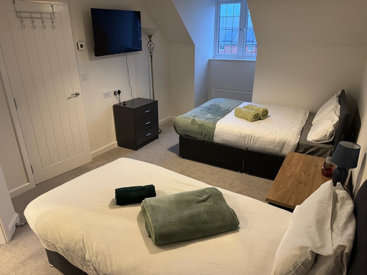 Bright and spacious 2-bedroom apartment in Warrington, ideally located with quick access to the M62 and M6 and easy links to Liverpool and Manchester. The apartment features a modern bathroom with walk-in shower, private garden, comfortable living space, and a fully equipped kitchen. Sleeps up to 6 guests with a sofa bed. A park is located across the street, and pets are welcome, making it ideal for families, business travellers, and longer stays.