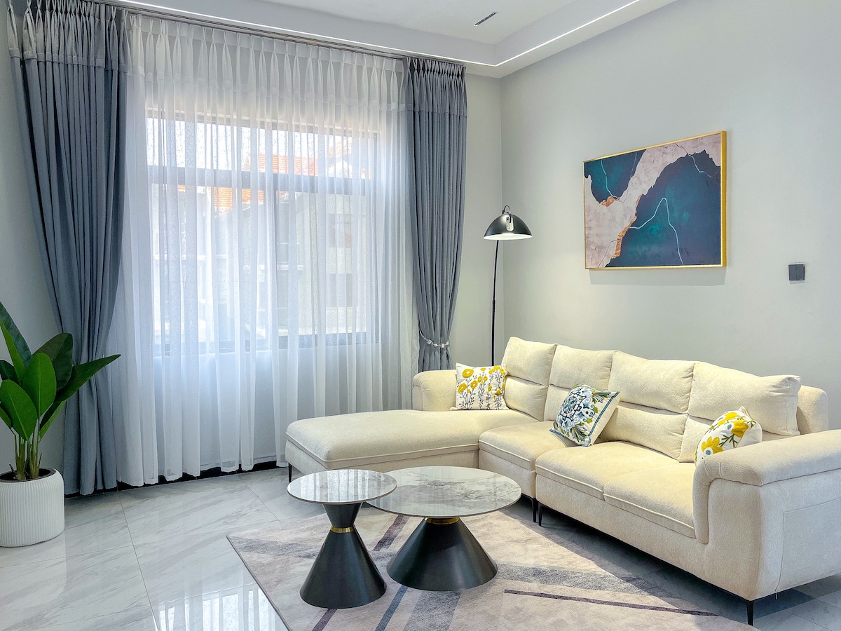 Residence 42 offers 5-star hotel-grade living in a spacious 4-bedroom home, ideal for families, groups, relocations, and business travellers. Set within a secure gated community with gardens and quiet streets, it provides international-standard comfort and privacy, while remaining close to the vibrance of city life. Enjoy European appliances, internet access, reliable 100% solar-supported power, stylish interiors, and generous space to live and work.