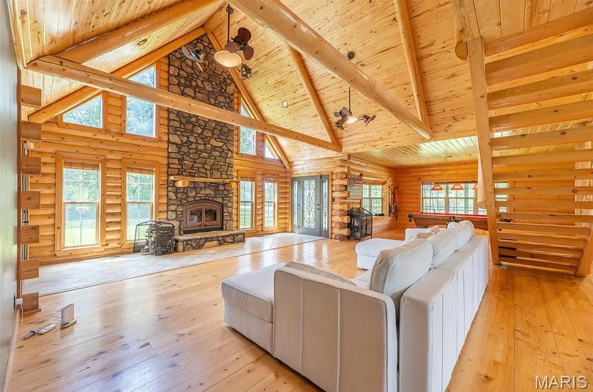 Escape to a secluded 5BR cabin on 56 private acres near Lake Wappapello! Backed by national forest, this retreat features a hot tub, stocked pond, shooting range, pool table, large kitchen, open living room with fireplace, and a wraparound deck. Perfect for hunting, fishing, and relaxing with family or friends—just minutes from town and entertainment but feels a world away. With the charm of wilderness and the convenience of being close to town, it’s the ultimate year-round destination.