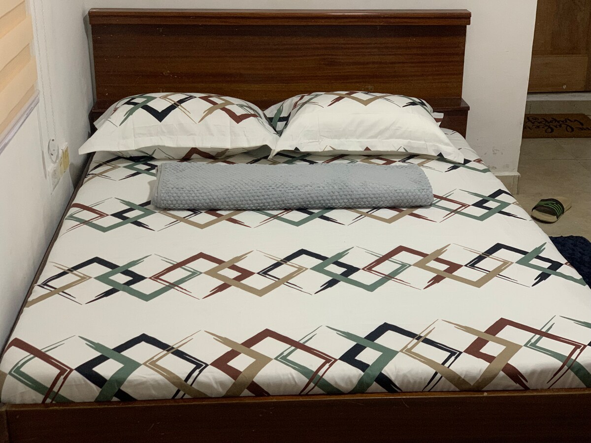This central unit suits solo travellers and business or leisure stays. You get a private bathroom, mini fridge, and microwave for your takeouts. It’s a short walk to the airport, VIP, STC, restaurants, shops, event centres, and nightlife. You don’t share amenities, so you enjoy a cosy, private feel in the heart of Takoradi. This gives you a cosy homey vibe rather than a hotel. 😉