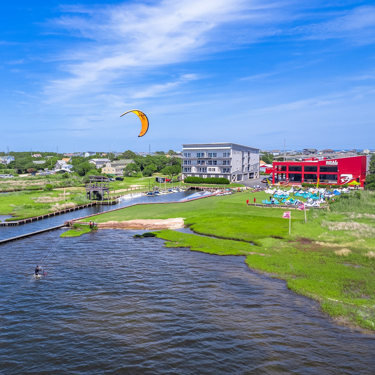 The Lighthouse is a second floor, water view 3-bedroom, 2.5-bathroom suite. Whether you’re chasing wind, enjoying a family getaway, or relaxing with friends, The Lighthouse offers comfort, style, and convenience. This second-floor, 3-bedroom, 2.5-bath suite features teak floors, a fully equipped kitchen, Smart TVs, private decks with water views, and easy access to REAL Watersports, the sound, local and on-site dining.