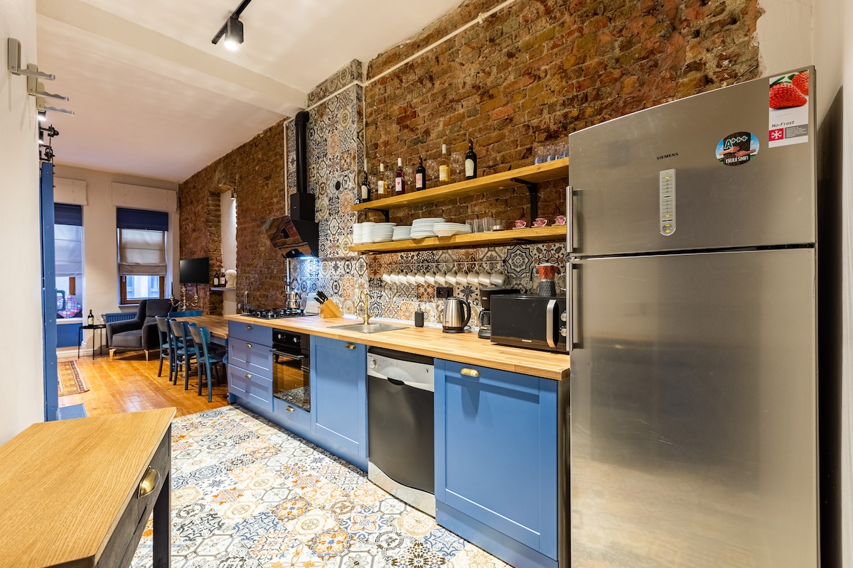 Nuestro apartamento recientemente renovado de más de 140 años se encuentra a 200 metros de la Torre Gálata. Hay dos dormitorios, 1 sala de estar, 1 cocina totalmente equipada y un baño. Cada habitación tiene aire acondicionado. El apartamento está en el tercer piso y puede alojar hasta 5 personas. El edificio y el piso en sí mantienen su mágico espíritu del siglo XIX. Queríamos ofrecer a nuestros huéspedes un ambiente histórico en un diseño moderno en la mejor ubicación.