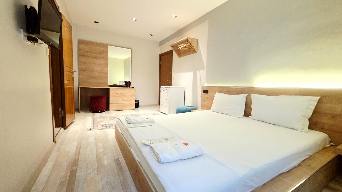 Este encantador apartamento hotel ofrece una mezcla única de sencillez y elegancia con su diseño moderno y refinado. Perfecto para dos personas o una pareja, incluye una cómoda cama doble, una cocina bien equipada, un baño privado y un televisor inteligente de 40 pulgadas. Ventanas grandes. Con una ubicación ideal a solo unos pasos de la costa de Ortaköy, el puente del Bósforo, las famosas tiendas de kumpir y gofres, y el corazón histórico de Ortaköy en el centro de Estambul.